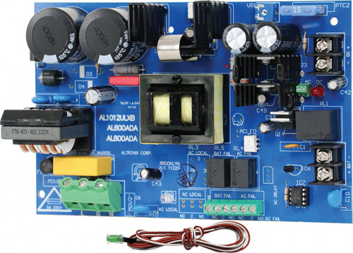 Altronix AL1012RLB power supply/charger converts a 115VAC, 60Hz input into a single 12VDC non power-limited output. It also offers a suite of features that includes AC fail supervision, battery presence, and low battery supervision. Includes LED cable assembly and LED lens.